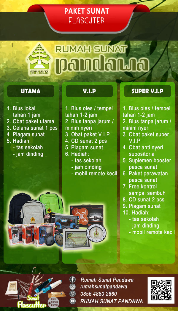 Selain pelayanan prima, pasien yang sunat di klinik Rumah Sunat Pandawa akan mendapatkan sertifikat sunat, celana sunat gratis, kontrol pasca sunat gratis dan konsultasi 24 jam penuh ke dokter yang menangani tindakan sunat
